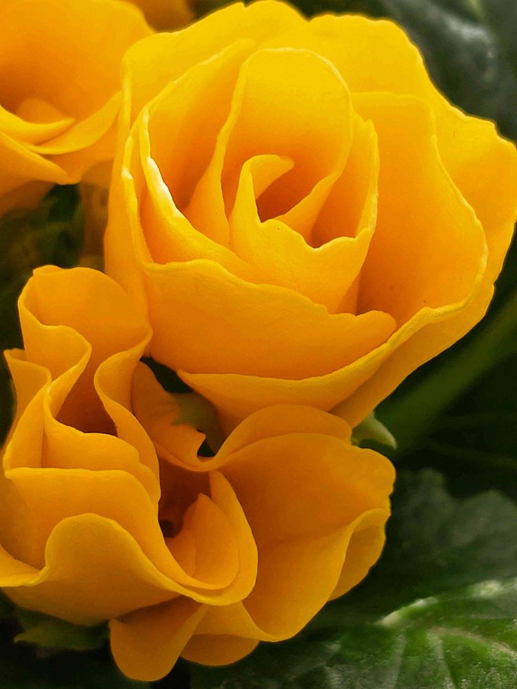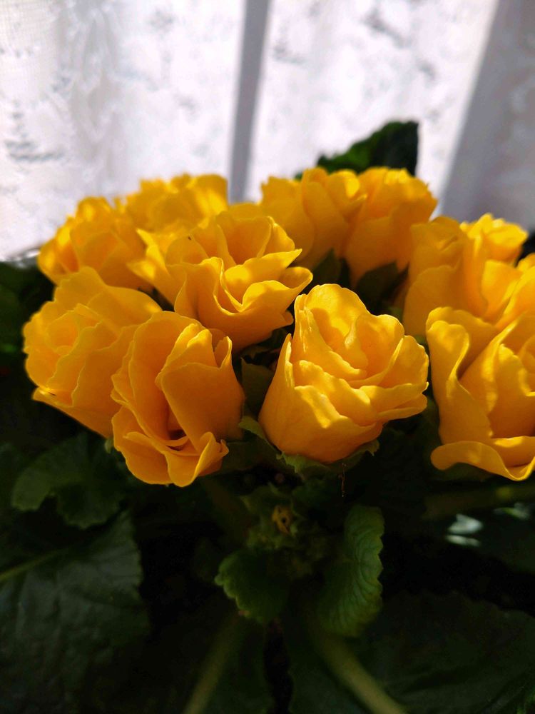 鮮やかな黄色いバラ咲きプリムラジュリアンは我が家のお花です