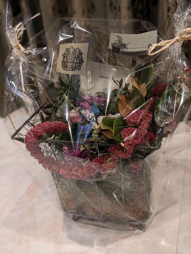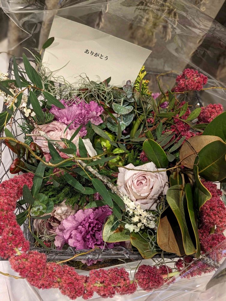 東京の展示から帰ったらこんなアレンジのお花が届き