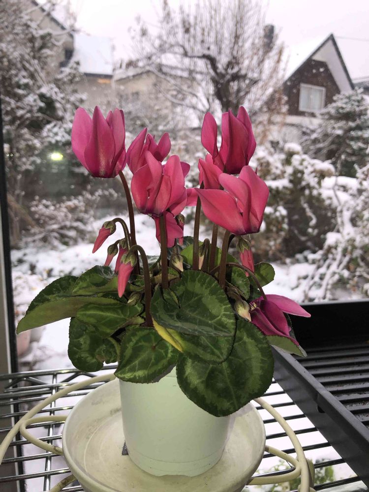 雪景色をバックにしてステキなシクラメンさんですネ💖