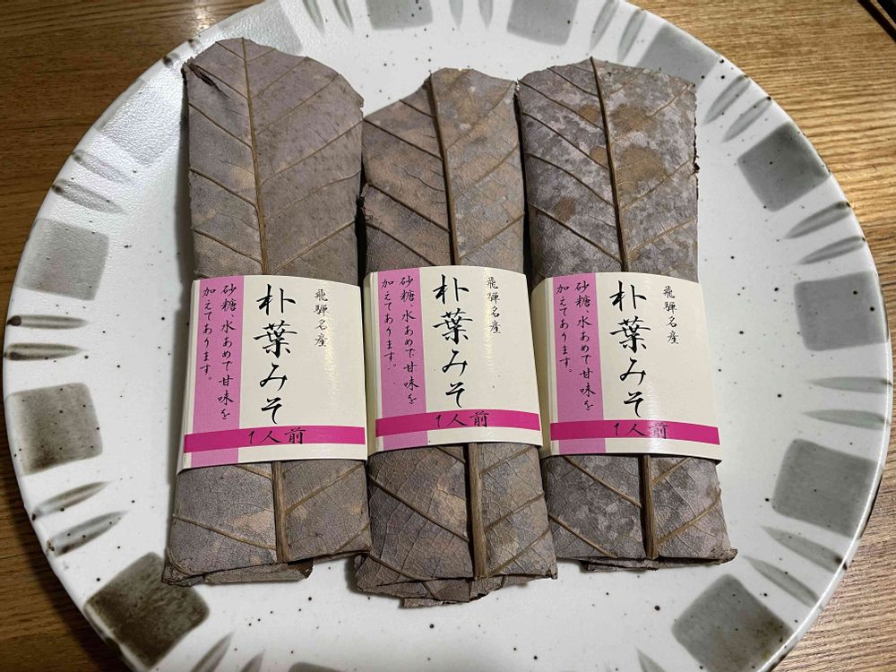 お土産の朴葉には、パックに入った調味味噌が包まれています。