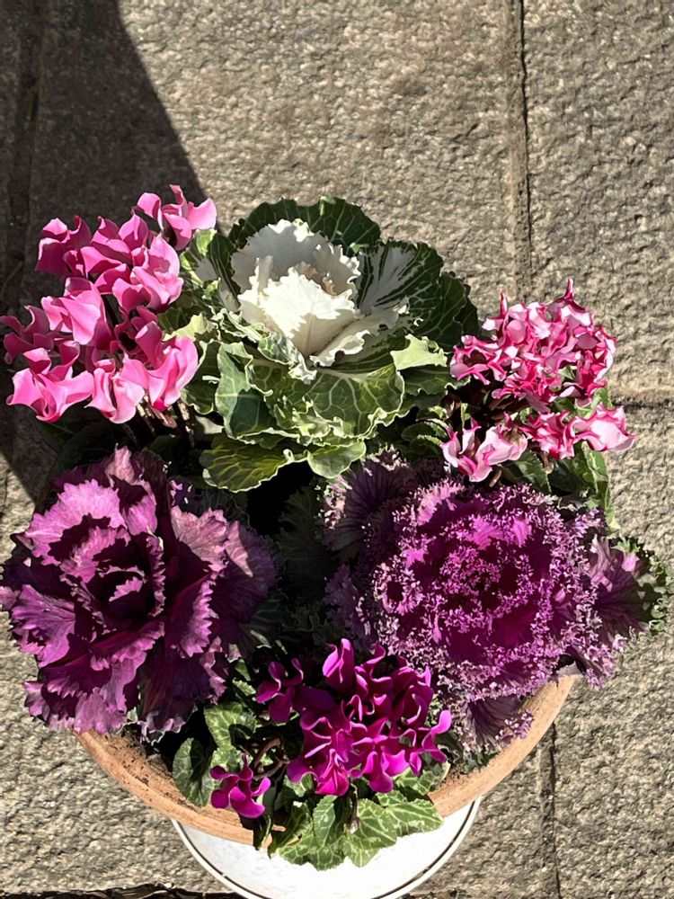 3枚目 葉牡丹とガーデンシクラメンの寄せ植え