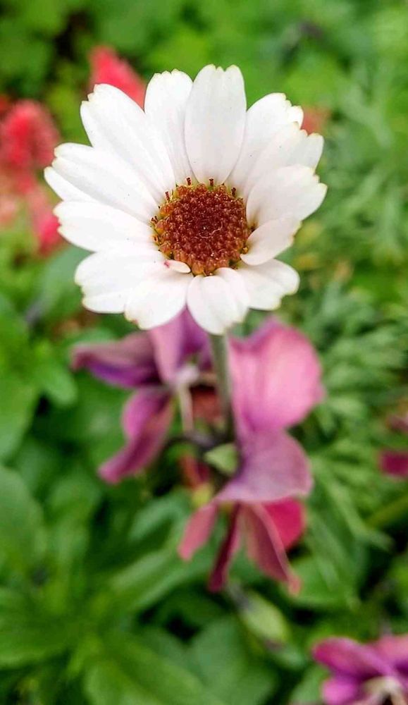 なんか伸びて来たぞ~って ずっと見ていたら1輪だけど今朝開きました🌼🌿ローダンセマム🌼🌿