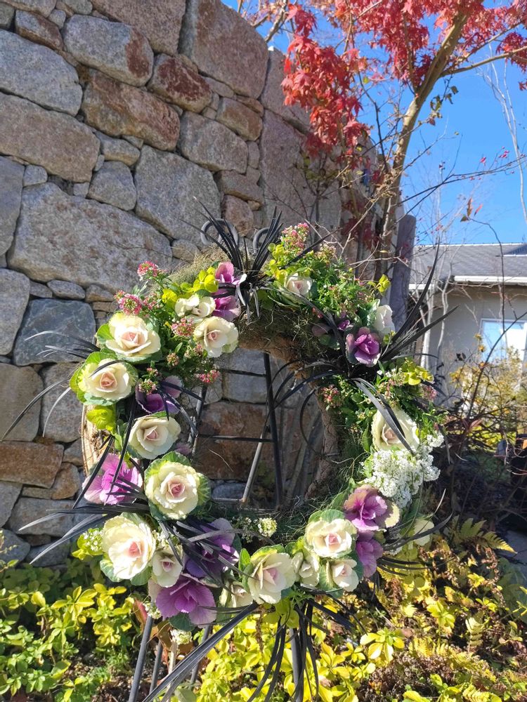 葉牡丹のリース素敵です✨長く楽しめて花の変化も楽しめますね。✨