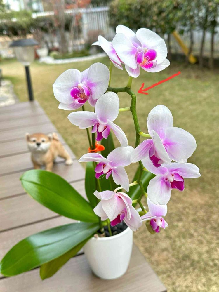 お歳暮でいただいたミニ胡蝶蘭、我が家にきて3度目の花芽が出てきて今、順調に育ってます。