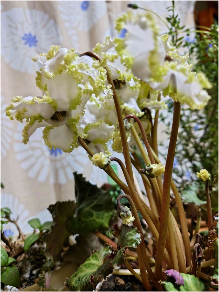 縁取りがライムグリーンのフリフリ・シクラメン🤍