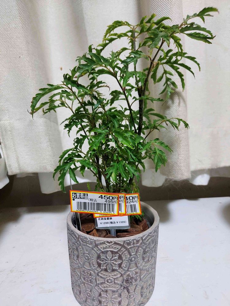 小さな小さな観葉植物コーナーがあるんですが、鉢カバー込みでこのお値段でいいの?と思うようなものがあったのでついカゴに入れちゃいました。