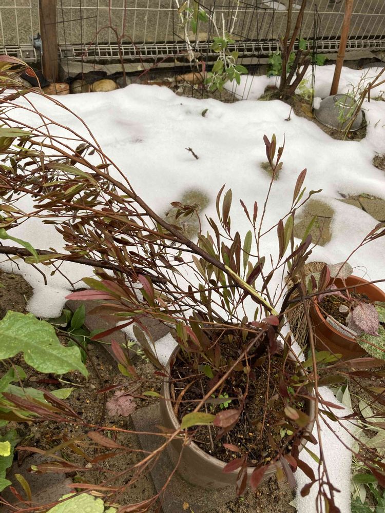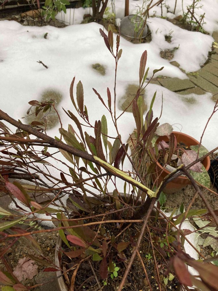 雪が少し溶けて、庭に久々に行ってみると何本か折れてる…😭