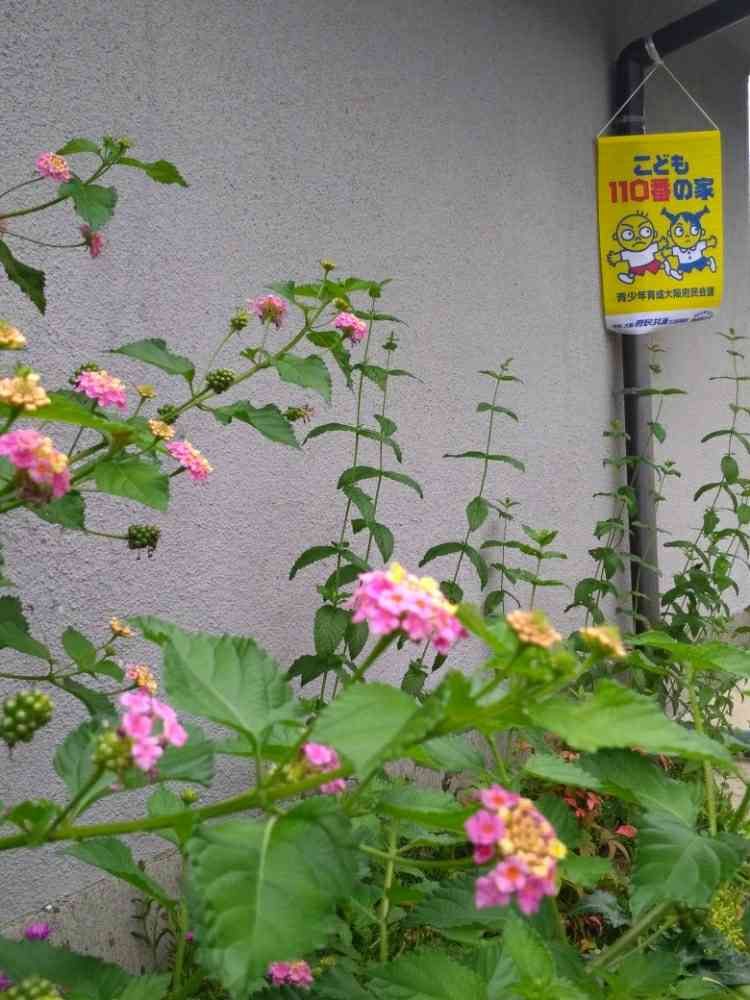 通学路側に(子供110番の家)旗を掲示。✨ランタナの花が次々に咲いて綺麗です。✨✨