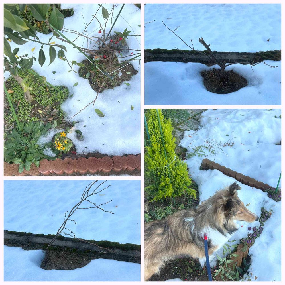 雪に埋もれていた木々が姿を現しました。ルドベキアも大丈夫です。