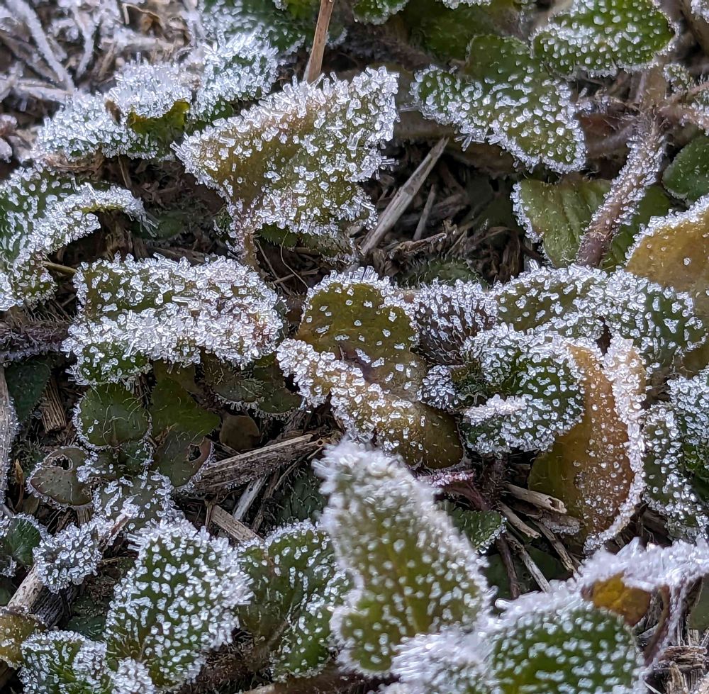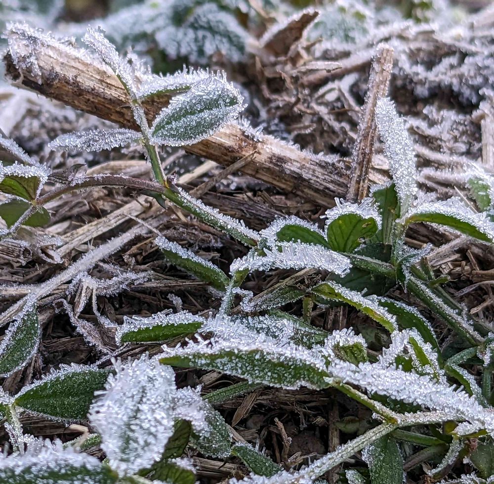 冬休みの孫のお守りで少し早起きをしたので、雑草の葉に降りた霜をゆっくり見ることができました😄