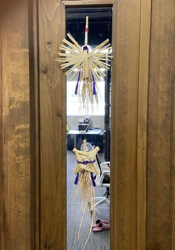 会社が今年10月新社屋に引越したので、稲藁細工を作りました。