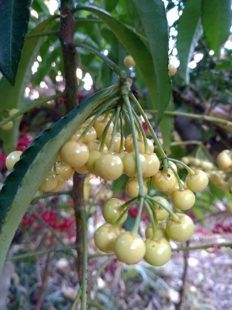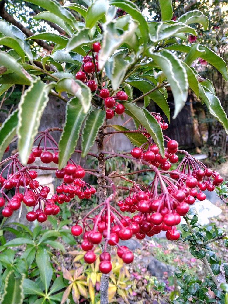 鳥からの贈り物だから、実の大きさも大きかったり…小さめだったり…、色も明るい赤だったり…黒みがかった紅だったり…と色々で比べてみるのが楽しいです🎶