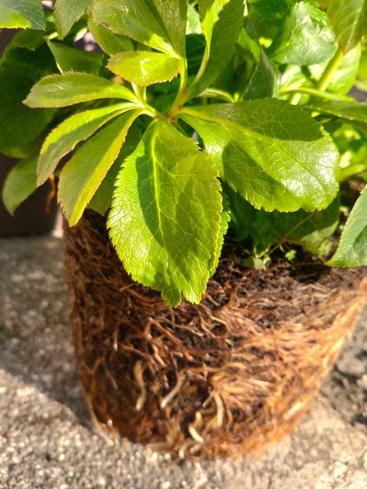右腕を今、痛めてて、ほうきを持つのも辛いのに、グルグル巻になった根っこ(写真三枚目)をフォークとミニ熊手でほぐしながら、それでもほぐれないので水洗いして、やっと少しだけ根をほぐしました。