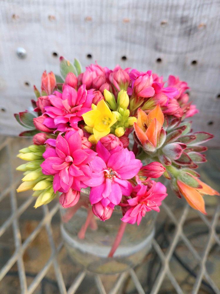 カランコエが綺麗に咲いてきたので摘んできました💐目が覚めるような蛍光ピンク💞とっても元気が貰えるお花です❀
