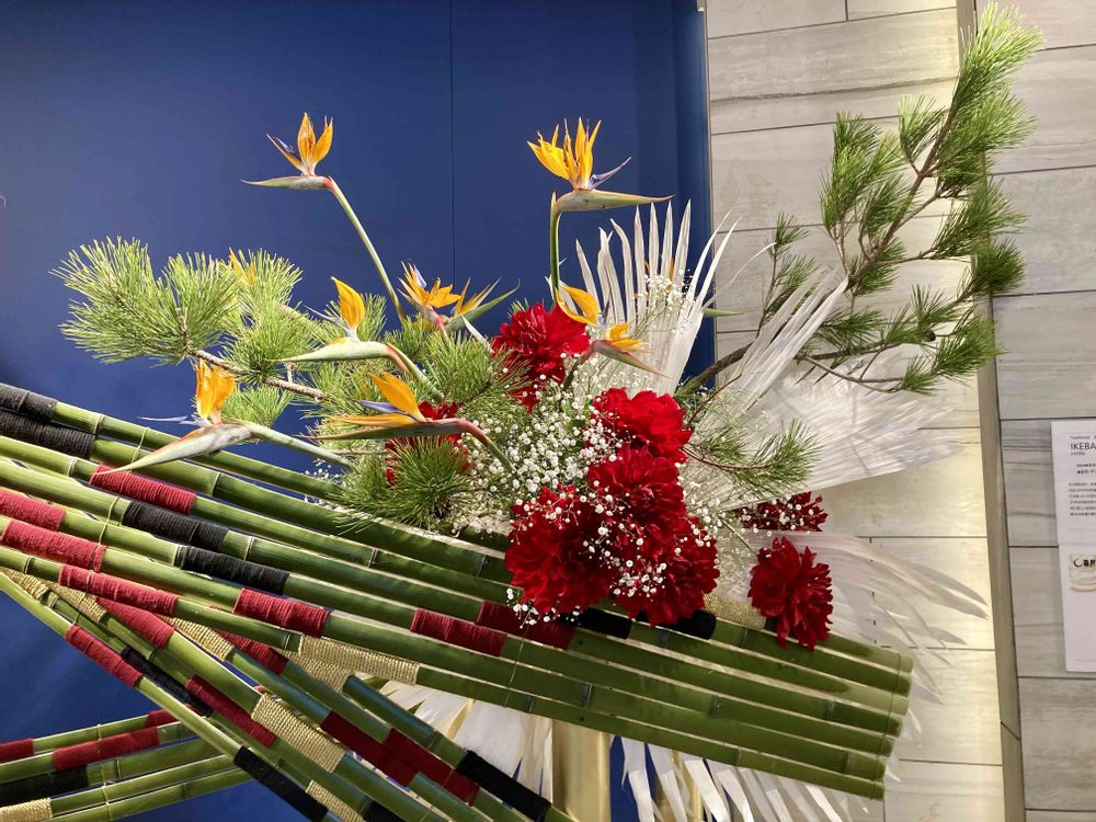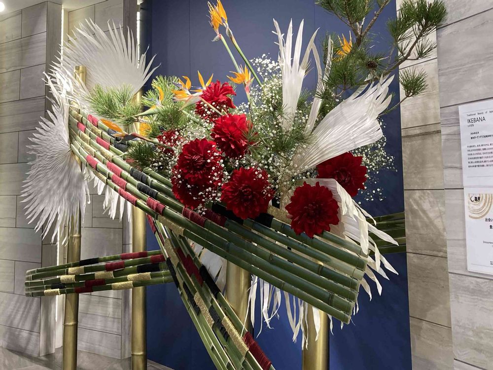 東京ガーデンテラス紀尾井町2階の東京メトロ永田町駅への連絡通路の入口に飾られた草月による迎春飾り。