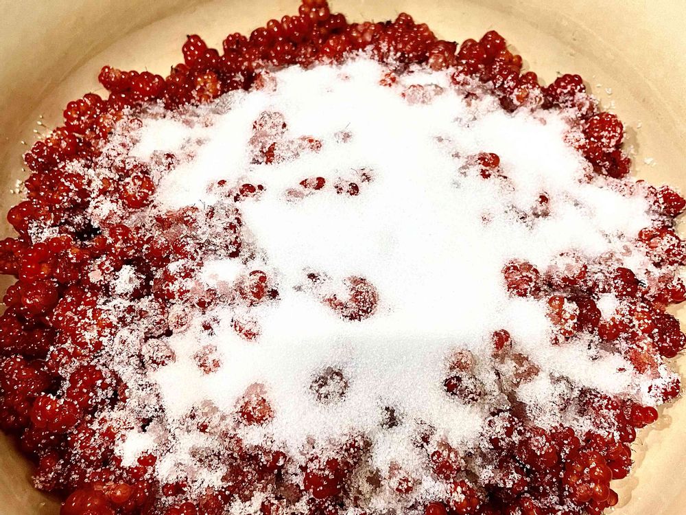 そして登山道にたくさん生っていたフユイチゴをお土産に摘んで帰りました。家で計ったら270gありました。