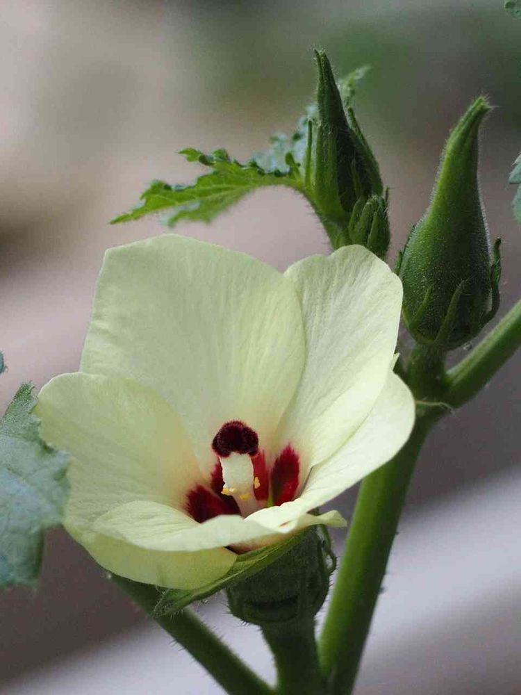 数日しか咲かないというオクラの花が綺麗に咲きました。初めて育てるオクラ、自宅ベランダにて…😃。