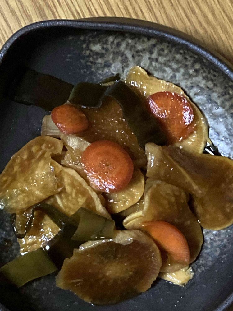 4枚目は、干した大根を昆布・人参・スルメイカで甘辛の醤油漬けにしましたよ。