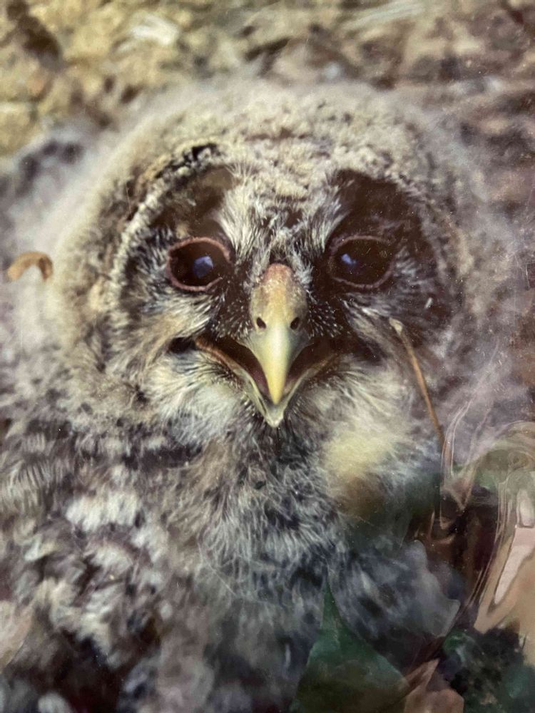我が家の仕事場の前で赤ちゃんフクロウ見た時は黄色の目していた
