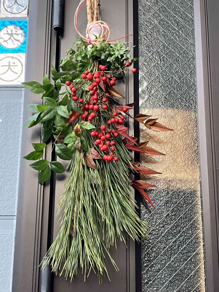 ②もらった松と南天と他寄せ集めで昨日お飾り作りました、あーでもないこうでもないで最後はテキトー😅