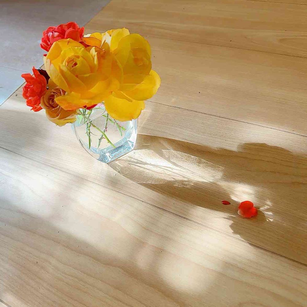 花瓶に刺して置いた瞬間に日が差し込みました。写真を撮ったら暗くなりましたよ。