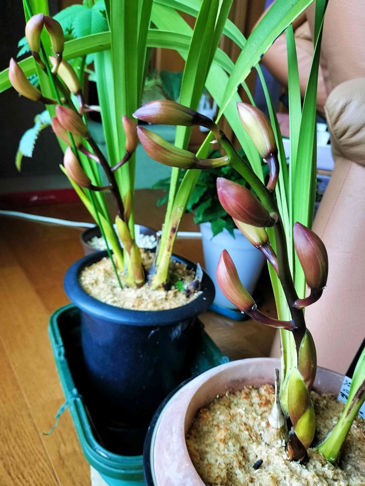 シンビジュームまだ咲かないけど蕾がだいぶ膨らんできたかな。蜜すんごい出まくりです。