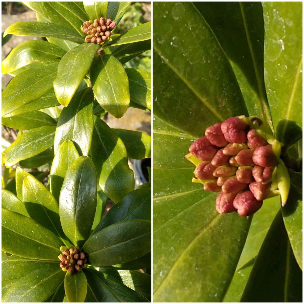 地植えの白い沈丁花は、未だ未だのようですが、赤いお花が一足早く…