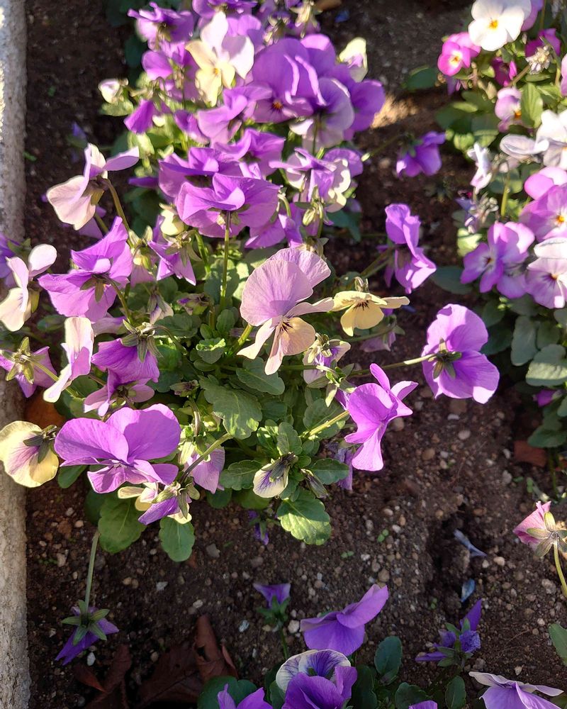 ②豪徳寺駅花壇のパンジーさんたち💜💟🤍
