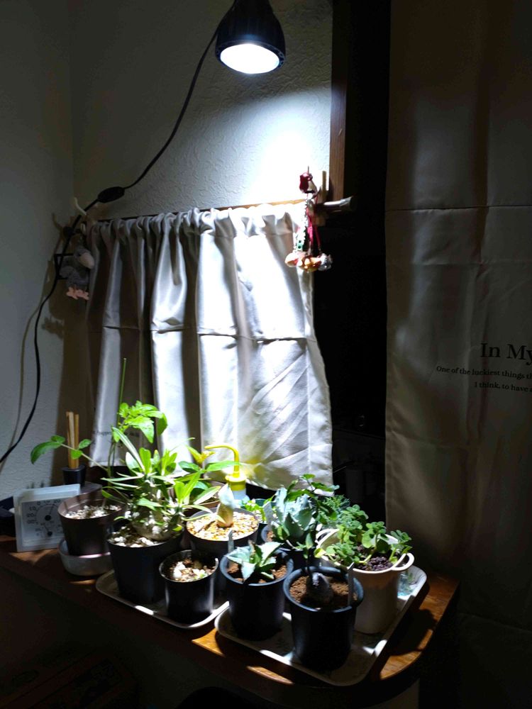 室内管理の植物達に育成ライトを、今までは普通の室内用ライトを当ててました。