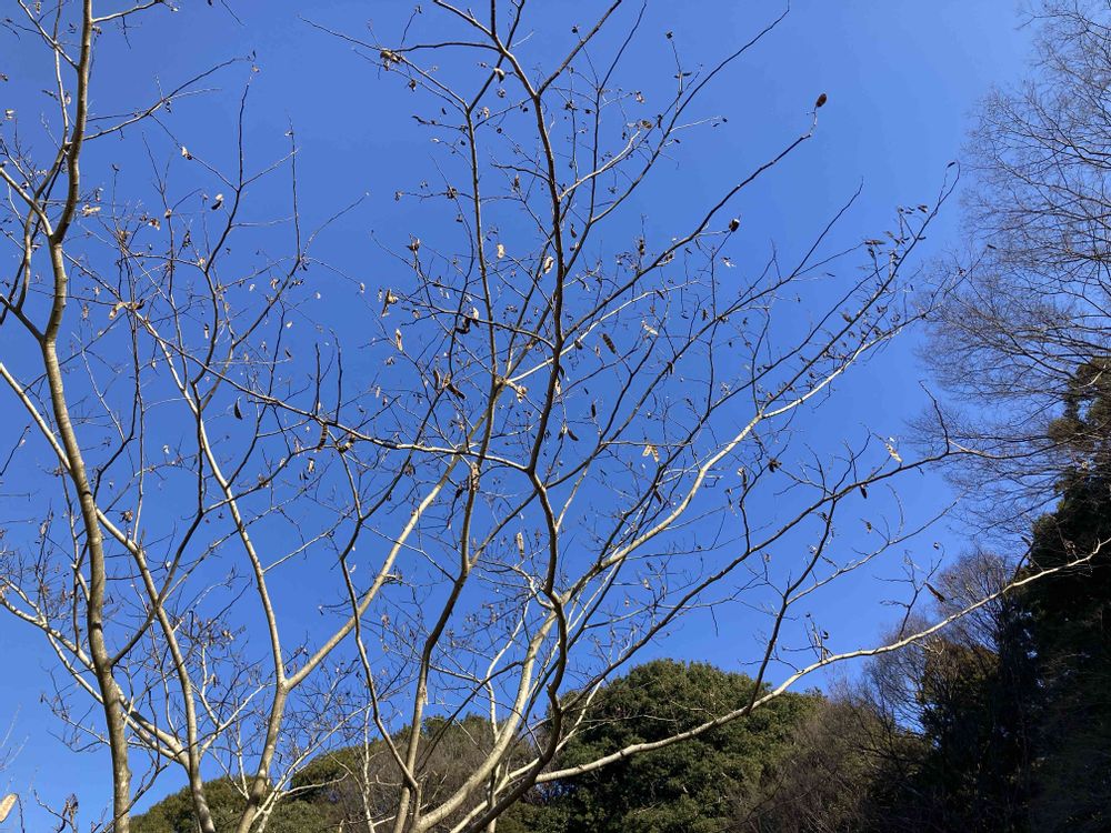 人の怒りを鎮める樹「ネムノキのサヤ(実)」が寒空の下、僅かばかり枝に残っていた。