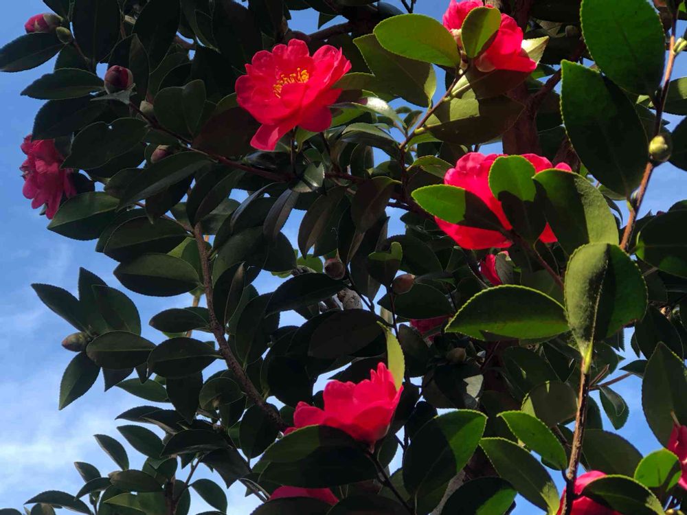 「サザンカ」が青空の下沢山