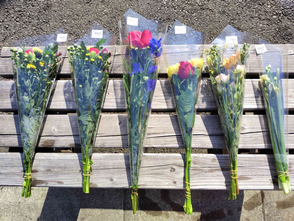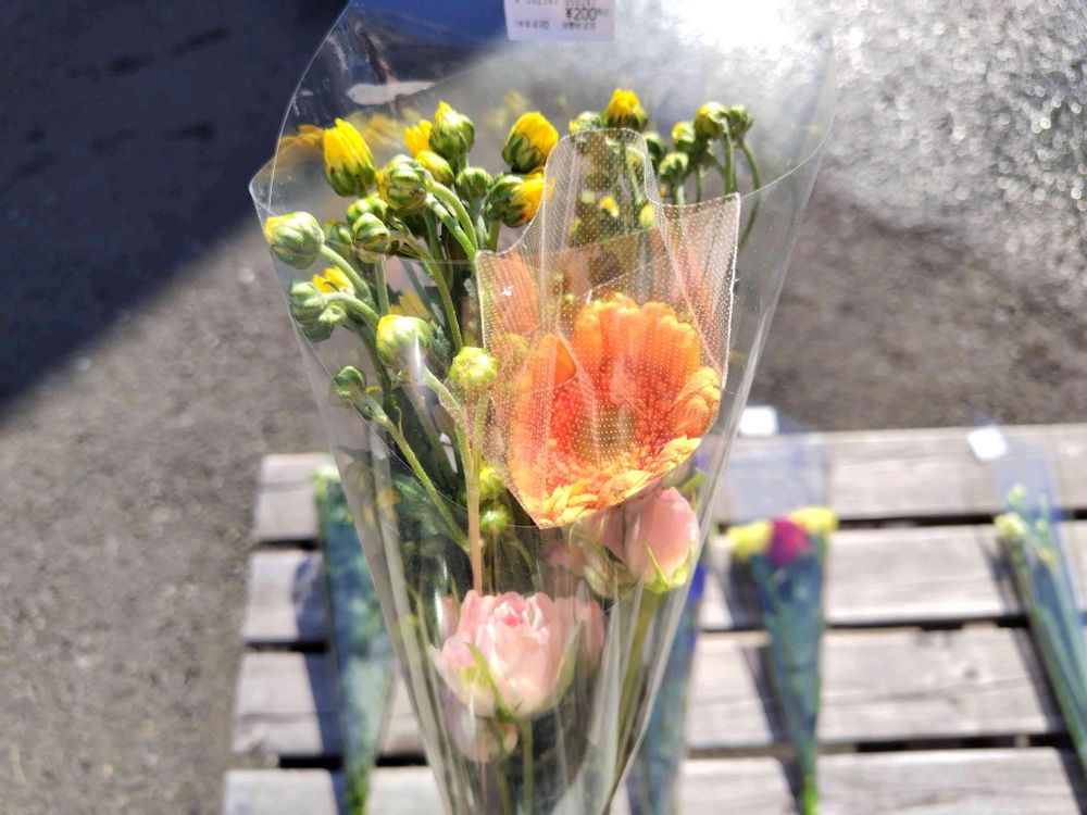 左側の仏花が2束で1,000円で右側の4束で1,000円ほどでした🥳