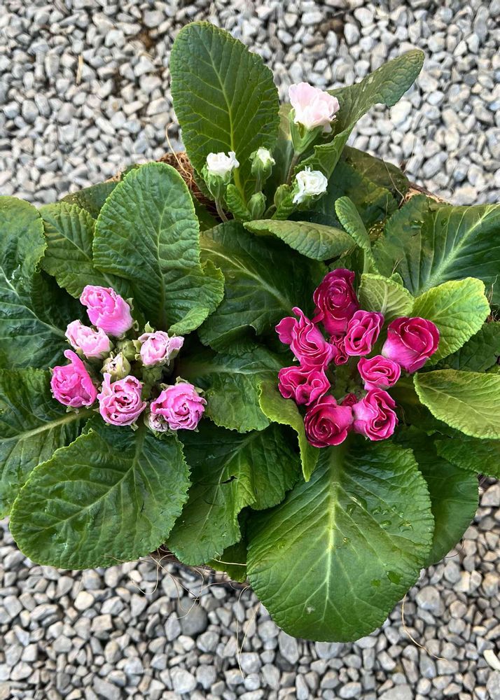 ハルさんの玄関アプローチ,バラ咲きジュリアン,プリムラ冬の冠の投稿画像