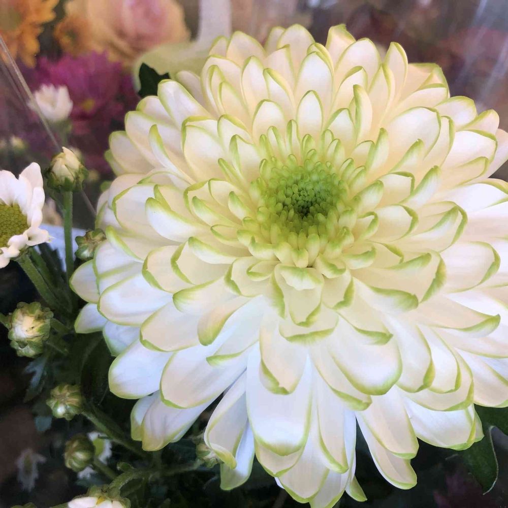 白いキクさんの花びらは、グリーンの縁どりが素敵です🤍💚