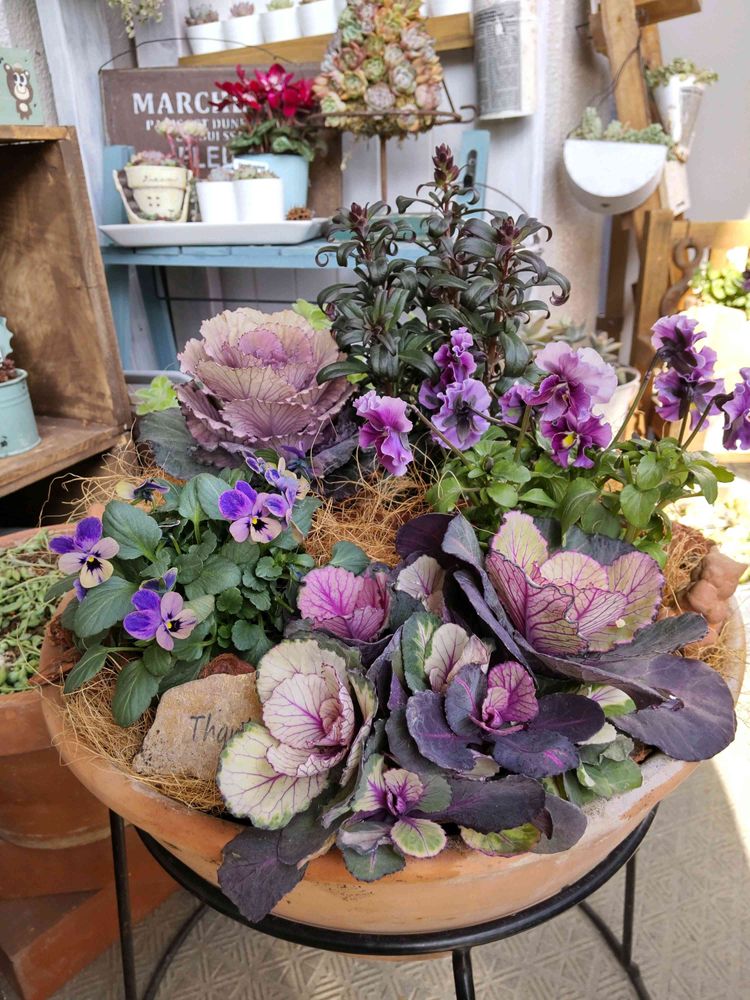 最近、アンティークな色目のこが気になってて、寄せ植えにしました😊