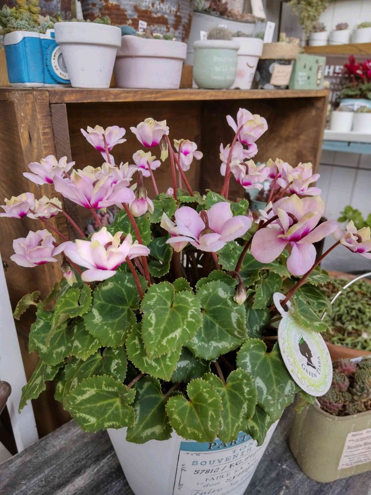 シクラメンはグリーンティアラって言うんだね✨優しいピンク色がとっても可愛いね💖