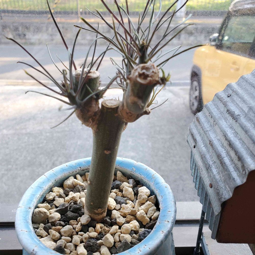 親株の方は、ちょっと無残な樹形になってしまいましたが、一本だけ挿し木が成功して、短く詰まりながら育っています❗