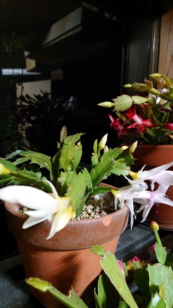 シャコバサボテン、ピンク、赤、白と綺麗に咲いていますね💞💕