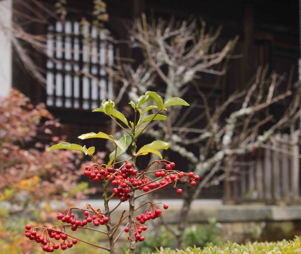 ひなびた古屋をバックに万両の実の鮮やかな赤が映えてます🥳👏👏