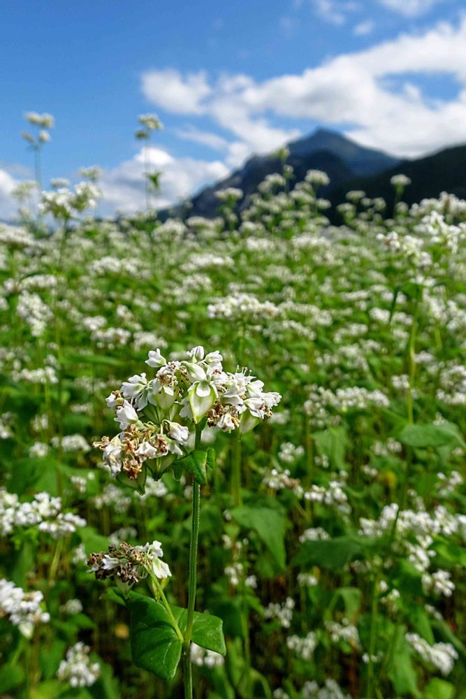 秩父の山を背景に、一面に白い花の蕎麦の花が綺麗に咲いてました⛰️。