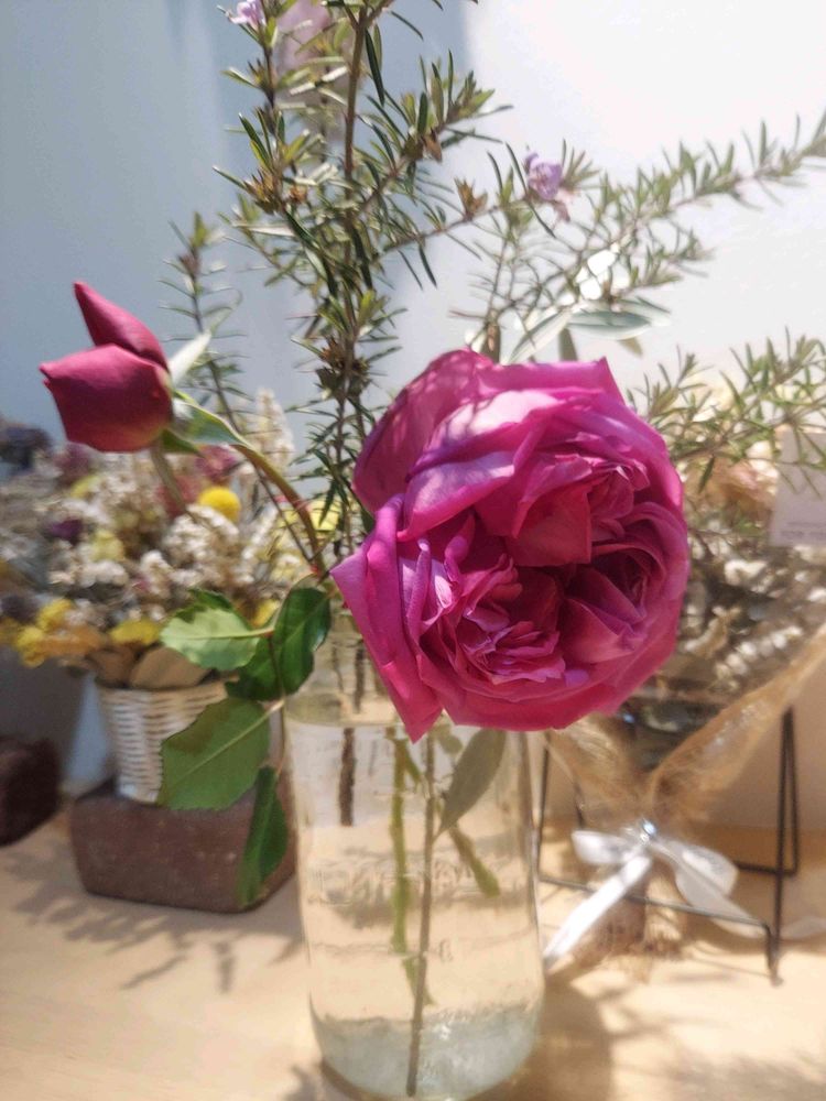 お庭で今年最後のバラ、ローズポンパドールを切り花にして家に飾りました💗薔薇はこれから剪定なのて思い切って切れますね😂👏玄関に飾ったので薔薇の神様、緑の神様、新年においでくださ~い👼🙏✨