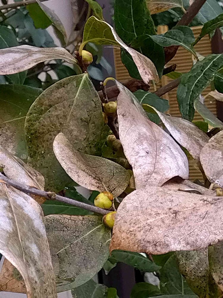 蝋梅の葉、まだまだしがみついて居ますよ❗️