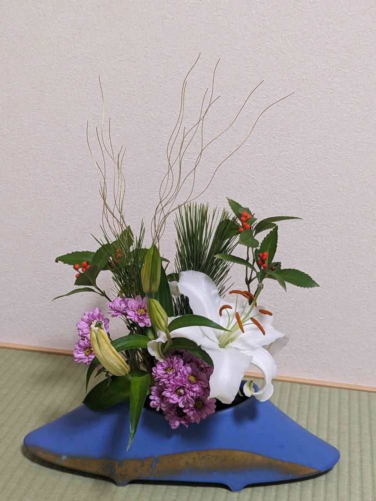 お節を作り、仏壇の掃除、床の間の花を活けました💐