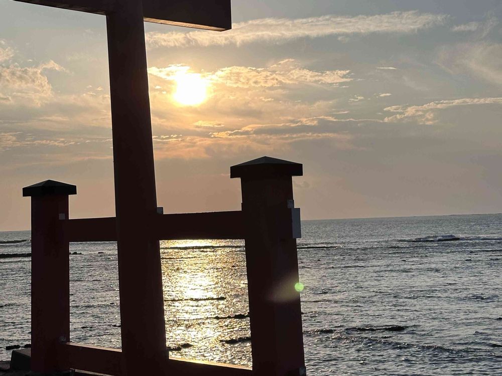 青島神社出入口に在る狛犬の像から見た☀️朝陽