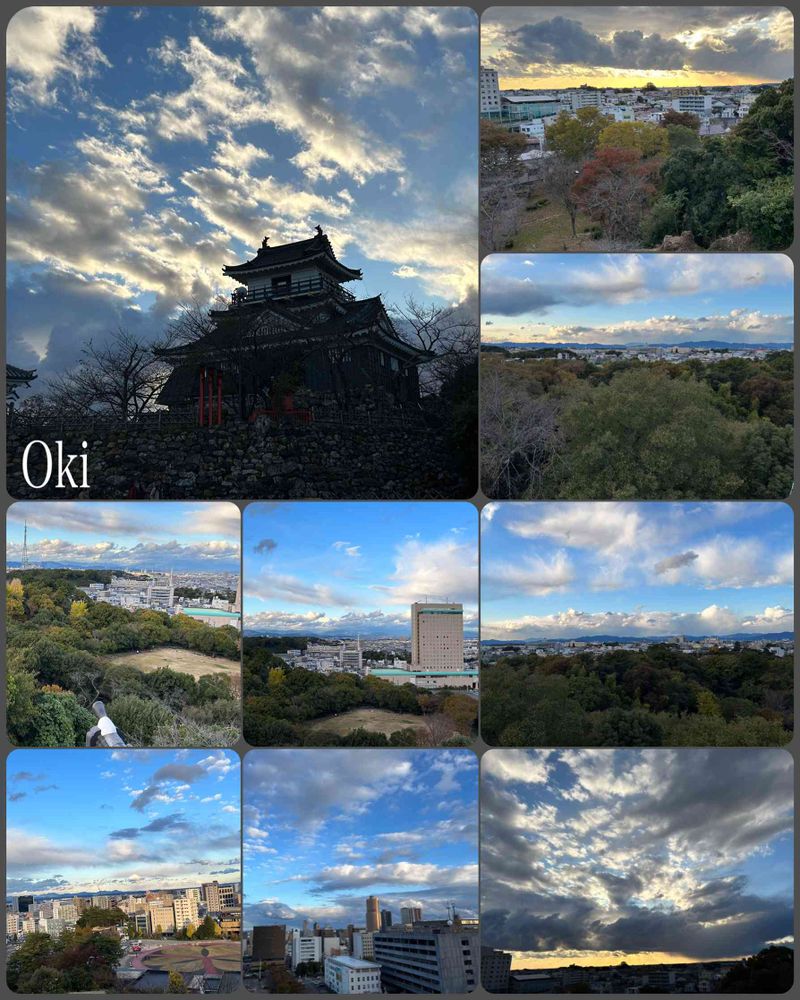 今日のお花🌼とお城🏯と🏯天守閣から眺める雲☁️☁️達のコラージュ画像です😊💕oki