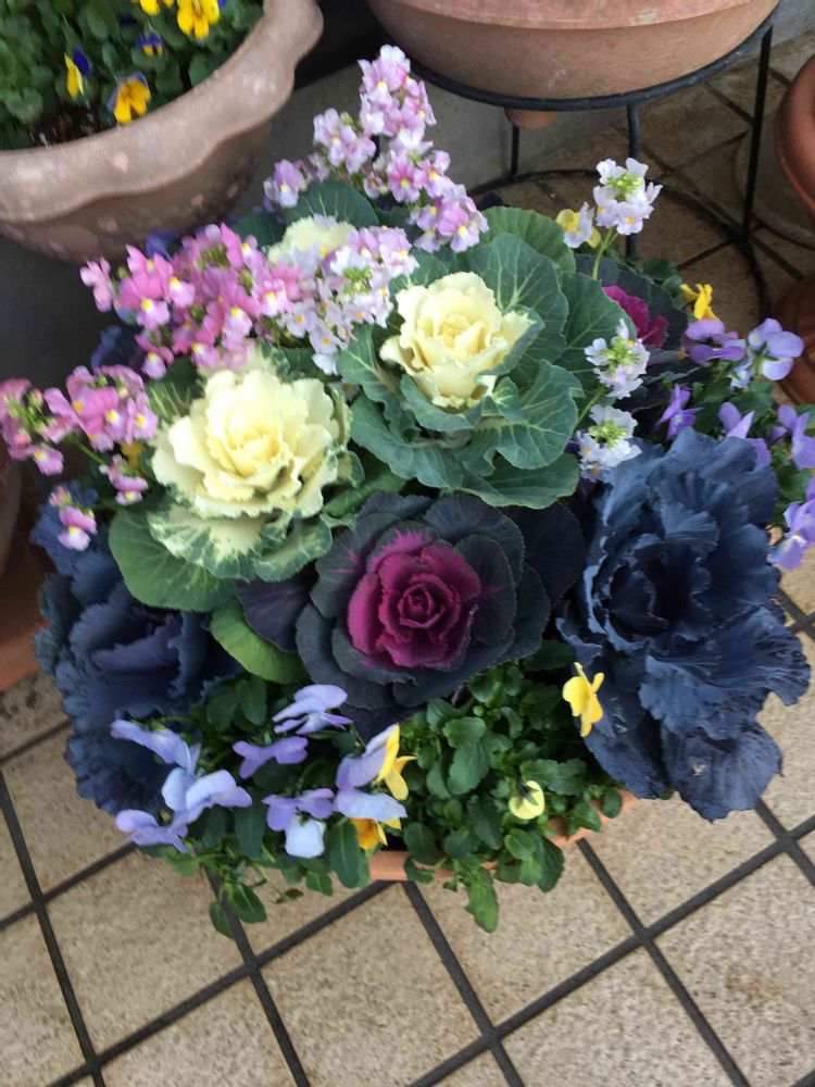 宿根ネメシア,パンジービオラ,ハボタン(葉牡丹)の投稿画像