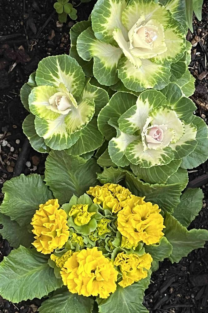 葉牡丹とイエローのプリムラ⁉️でしょうか?いいですねー✨😊