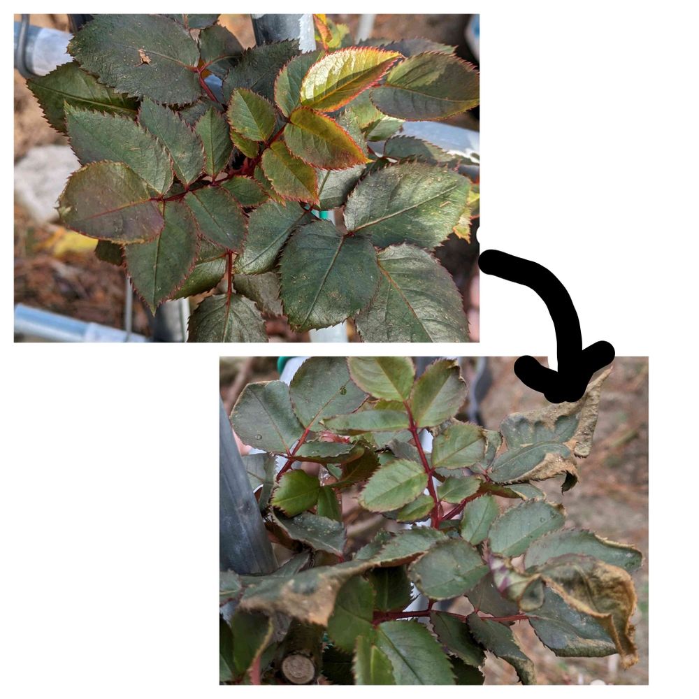 12月に暖かくて芽吹いてしまったアンクルウォルターの展開した同じ芽の現在の様子です。