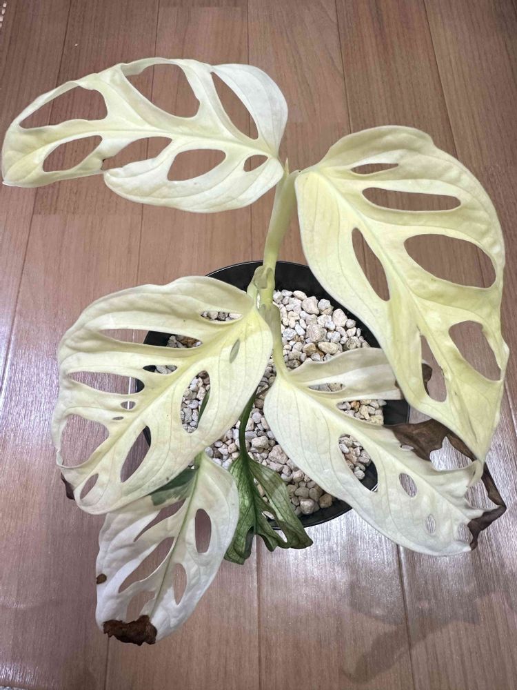 うちの斑入りモンステラがまっちろけ一枚目なんですけど、暖かく見守ってみます😆✨
