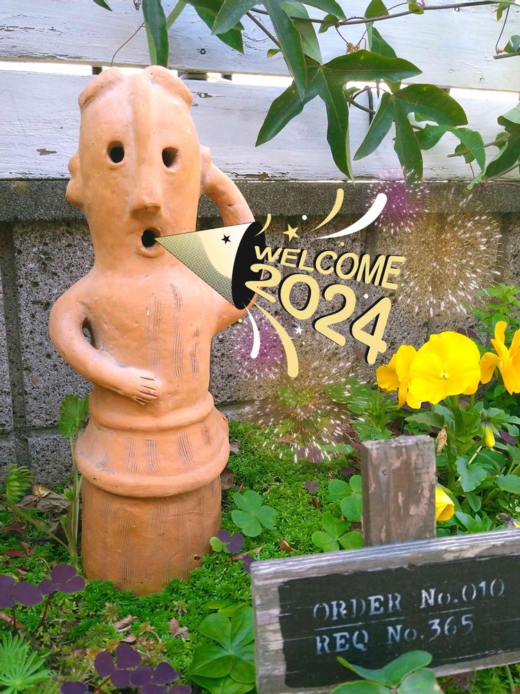 誰も居ない実家の玄関にひょうきんな顔して淋しく独りぼっち😔。うちの庭に引っ越してきた「はにわ君」です!どうぞよろしく。居心地はまぁまぁかな😊